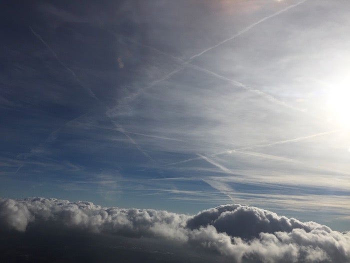 雲の上にある飛行機雲